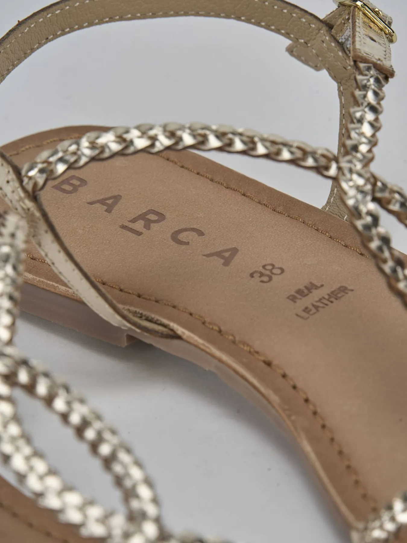 La tomaia in morbida pelle presenta fasce intrecciate e incrociate, che donano un tocco di eleganza senza tempo.