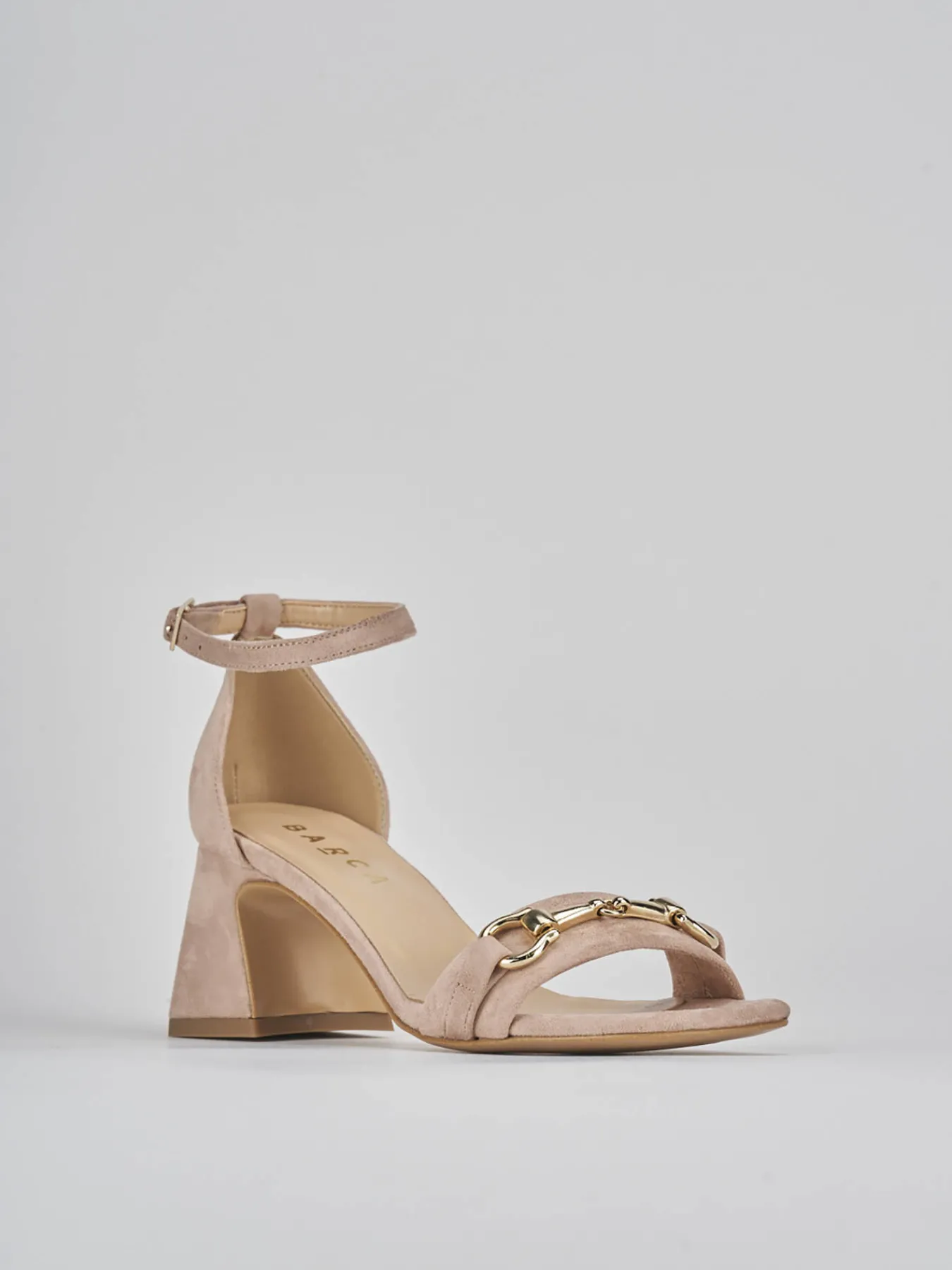 Sandalo tacco 6 cm, fondo in leggerissima gomma e soletto interno in vera pelle. Tomaia in morbido camoscio, punta squadrata con fascia unica in punta con accessorio, tallone chiuso e cinturino in caviglia con fibbia regolabile e comodo taccoo grosso. Adatta sia con un pantalone che con un abito.