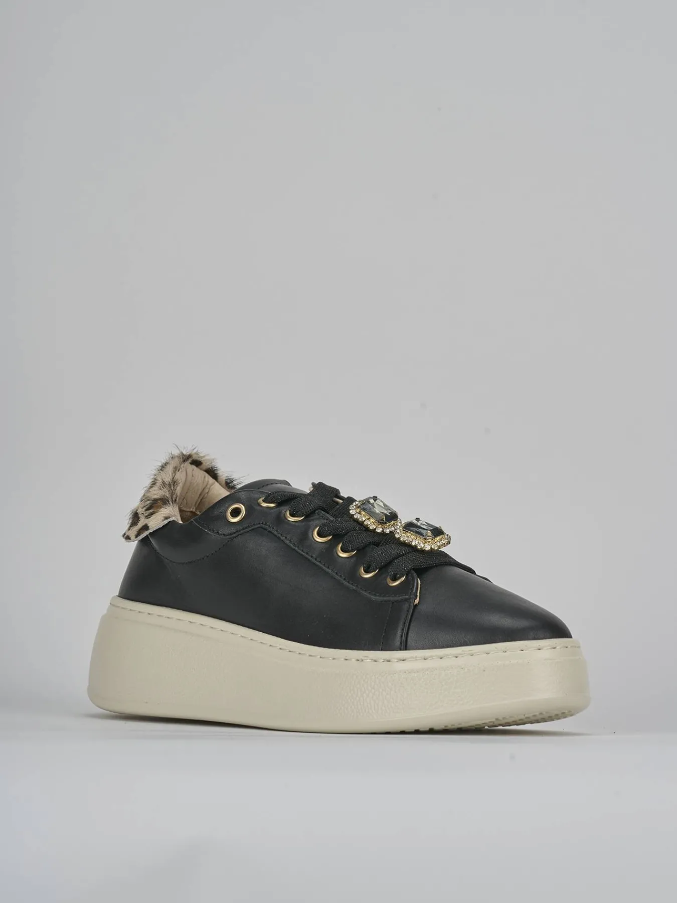 Il topponcino in cavallino con stampa leopardo è il dettaglio che fa la differenza, rendendo queste sneakers uniche e alla moda.