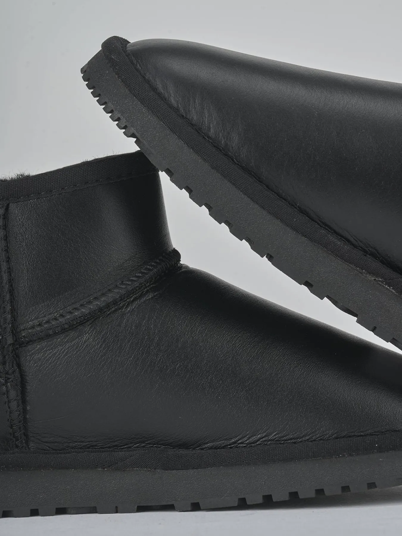 Il fondo in gomma seghettato assicura una presa sicura ad ogni passo, mentre il soletto interno in vero montone garantisce una calzata confortevole anche nelle giornate più fredde.