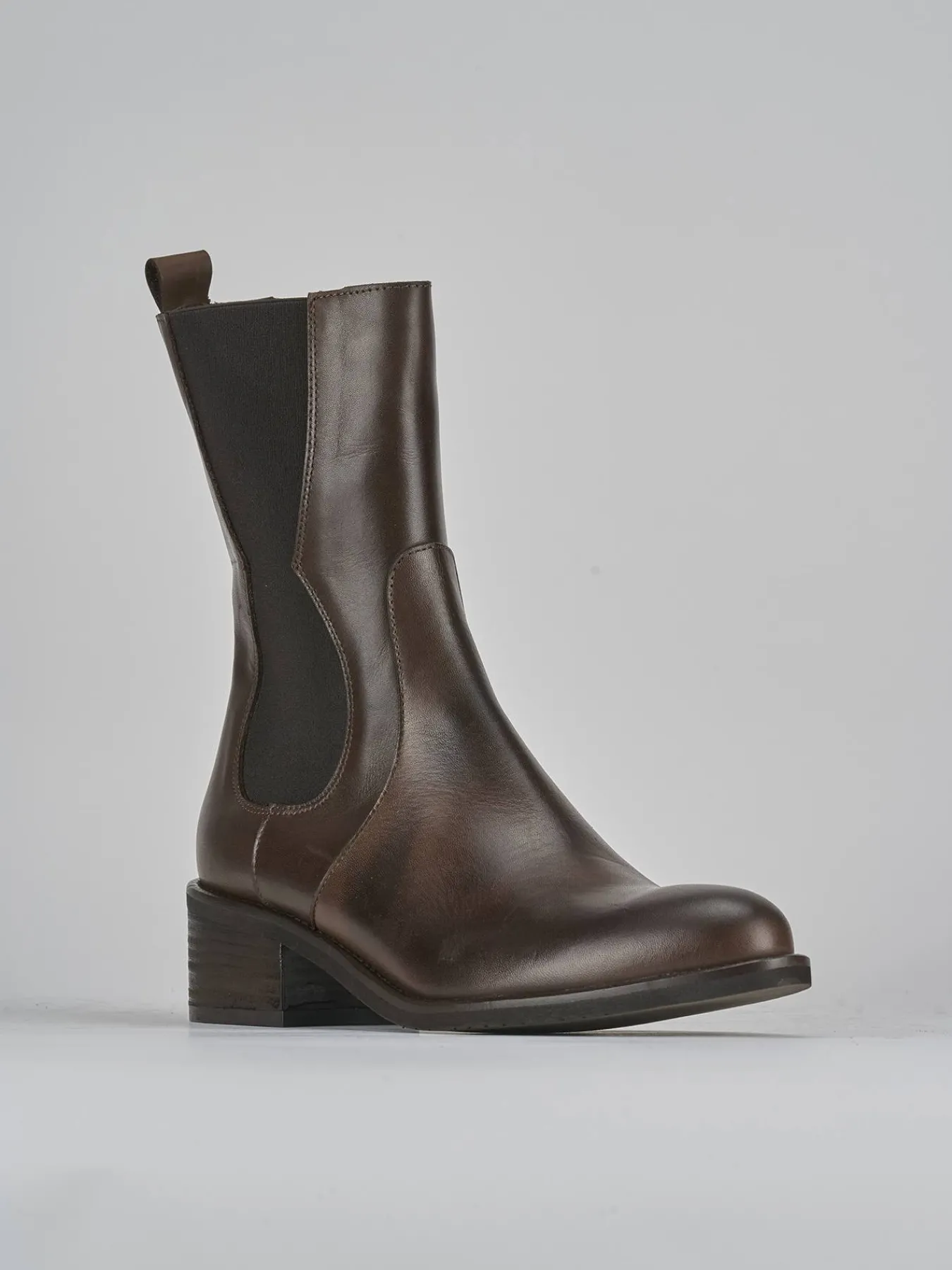 La tomaia in morbida pelle e la punta tonda garantiscono comfort e stile, mentre la parte laterale elasticizzata e la ghetta aggiungono un dettaglio moderno e funzionale.