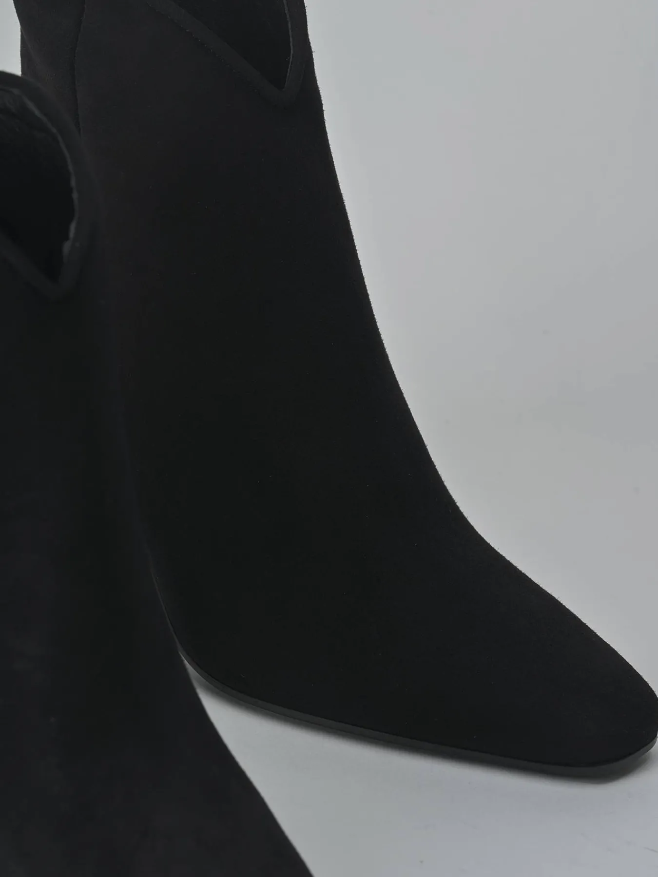 Realizzati in morbido camoscio, questi stivaletti presentano una punta sfilata e cuciture visibili a mano, dettagli che esaltano la qualità artigianale.