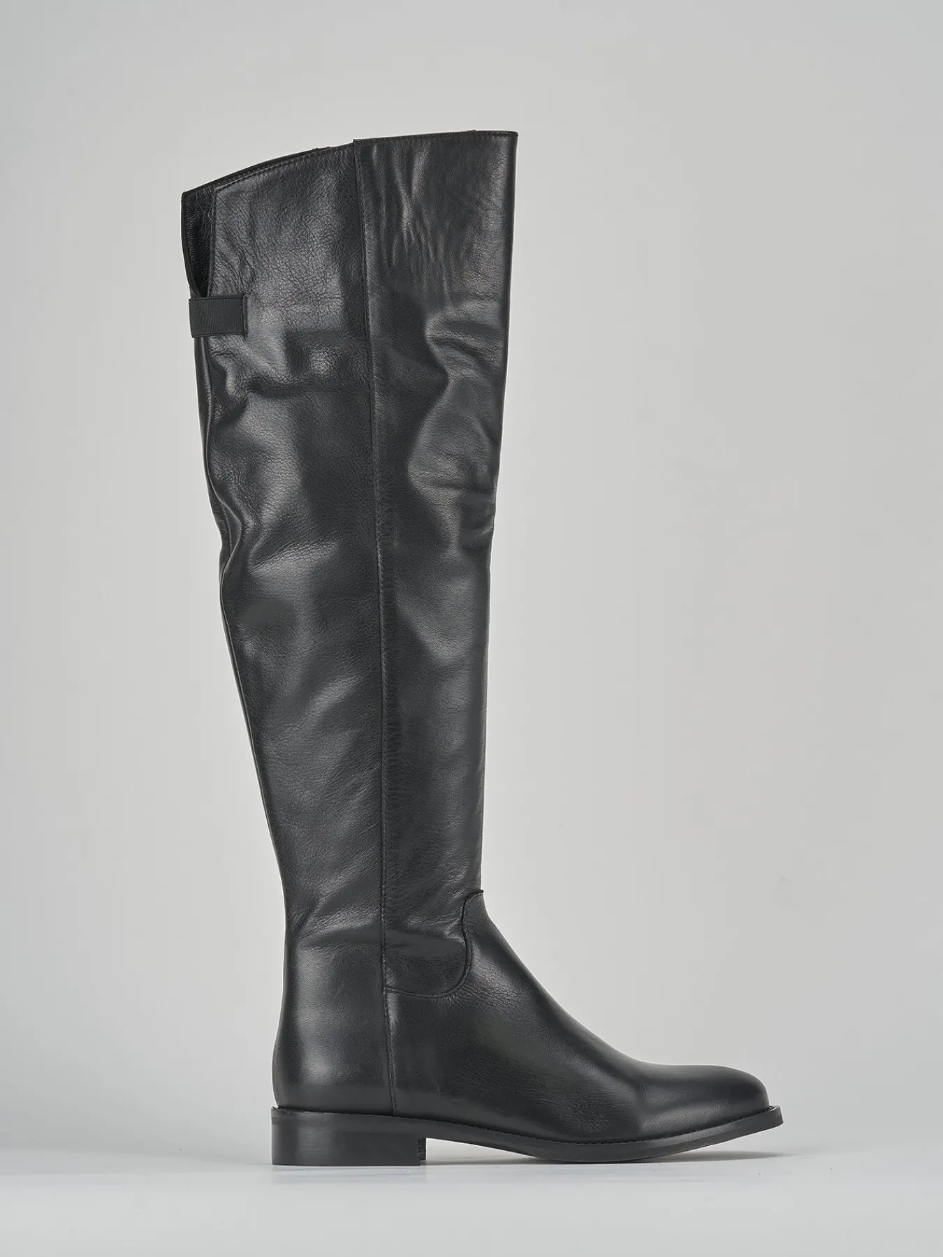 Realizzati in morbida nappa, questi stivali presentano una tomaia elegante con una svasatura posteriore chiusa da un elastico, garantendo una calzata perfetta.