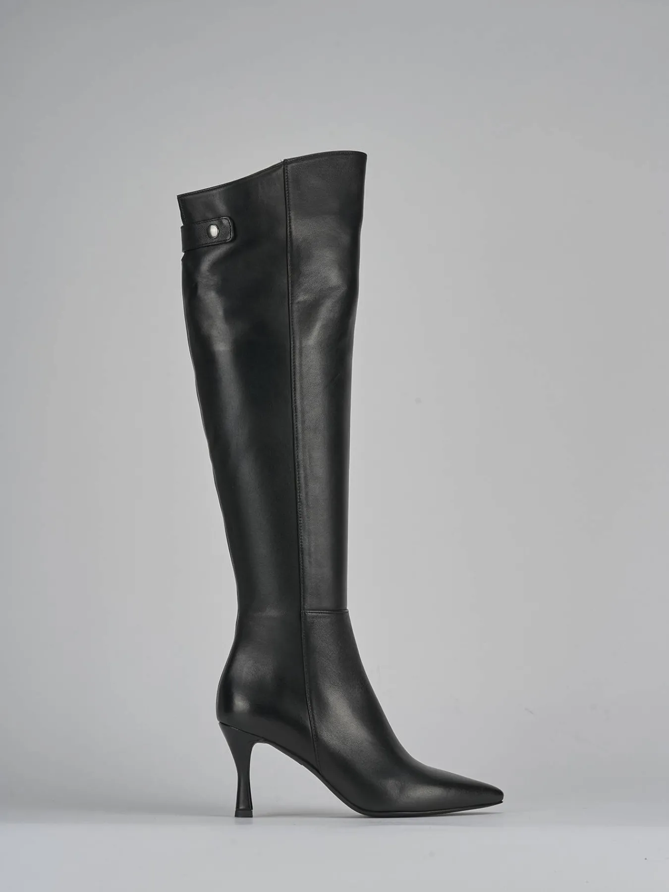 Le cuciture visibili sul gambale, che arriva appena sotto il ginocchio, donano un dettaglio sofisticato.