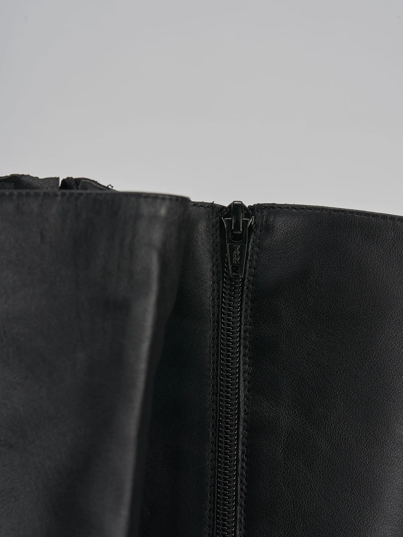 Il gambale foderato tubolare arriva appena sotto il ginocchio, esaltando la silhouette con grazia.