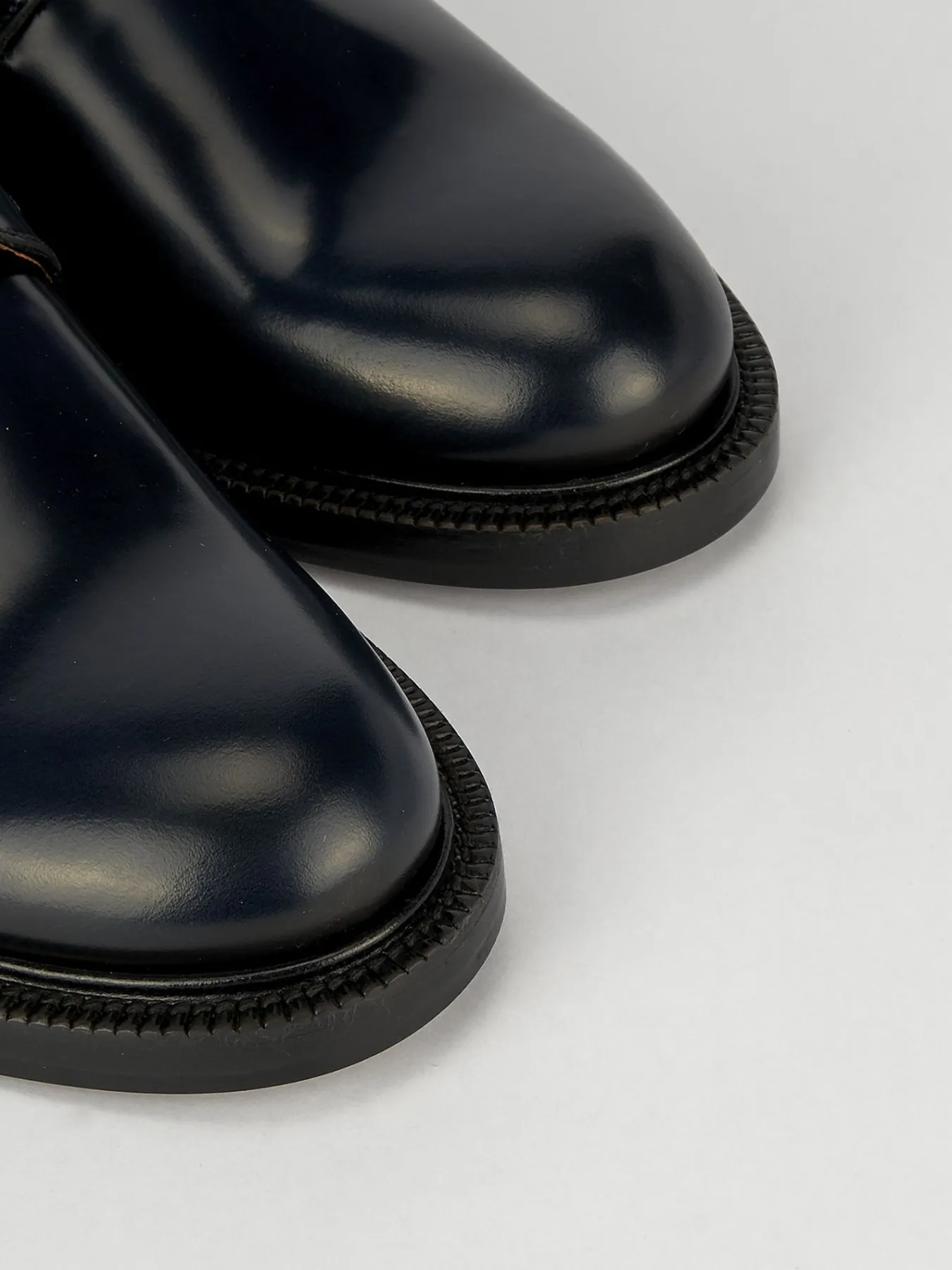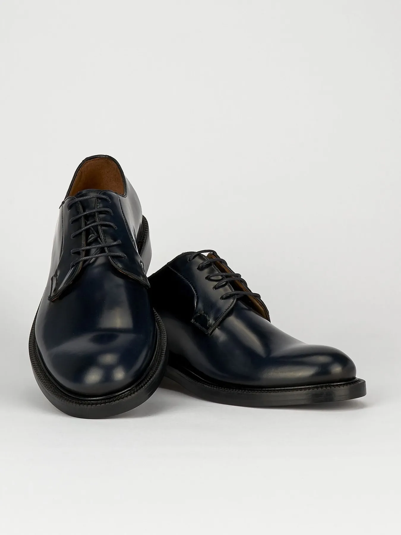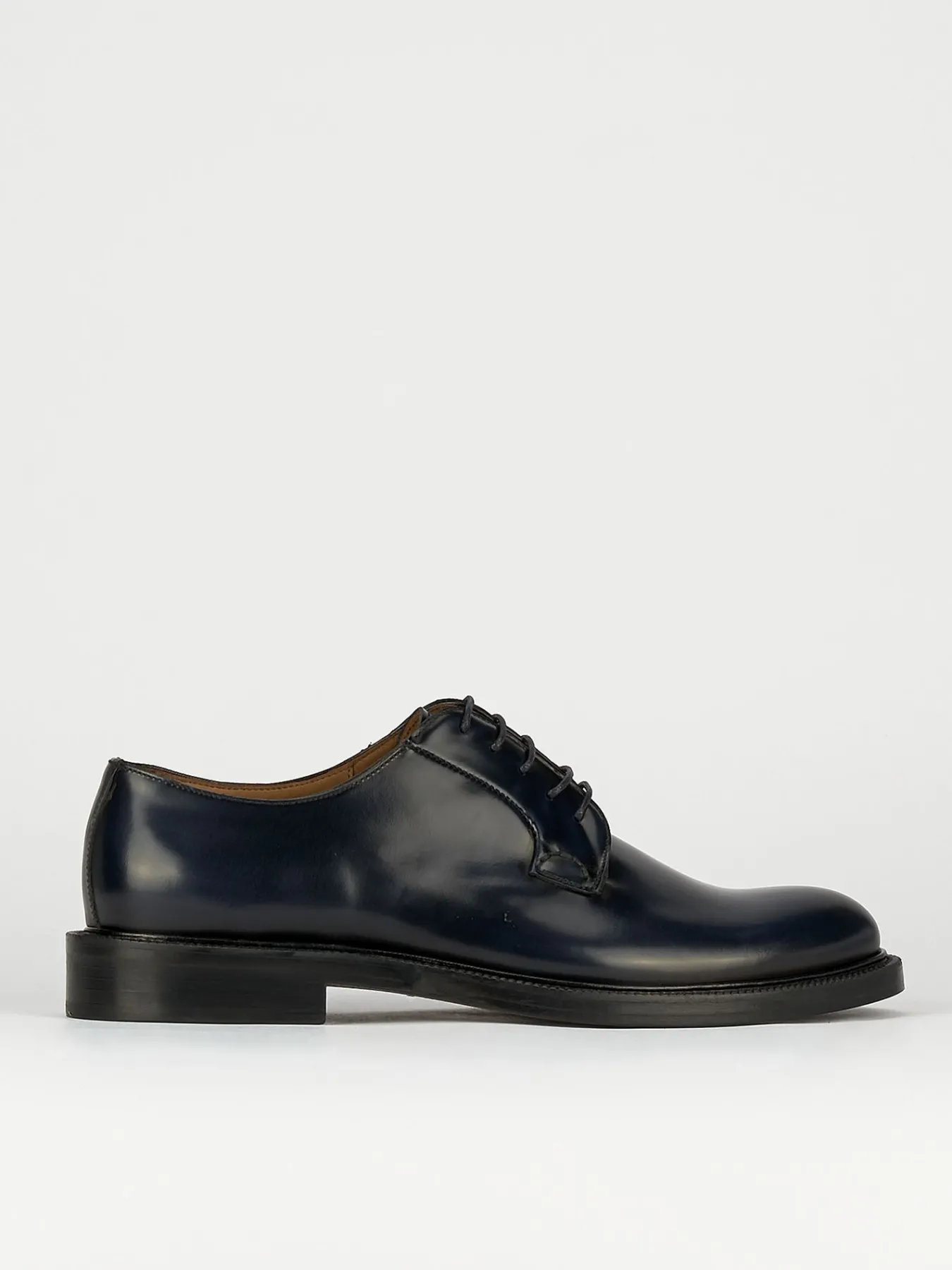 Realizzata in pelle blu spazzolata, questa scarpa presenta una raffinata allacciatura derby a 3 fori che aggiunge un tocco di classe al tuo look.