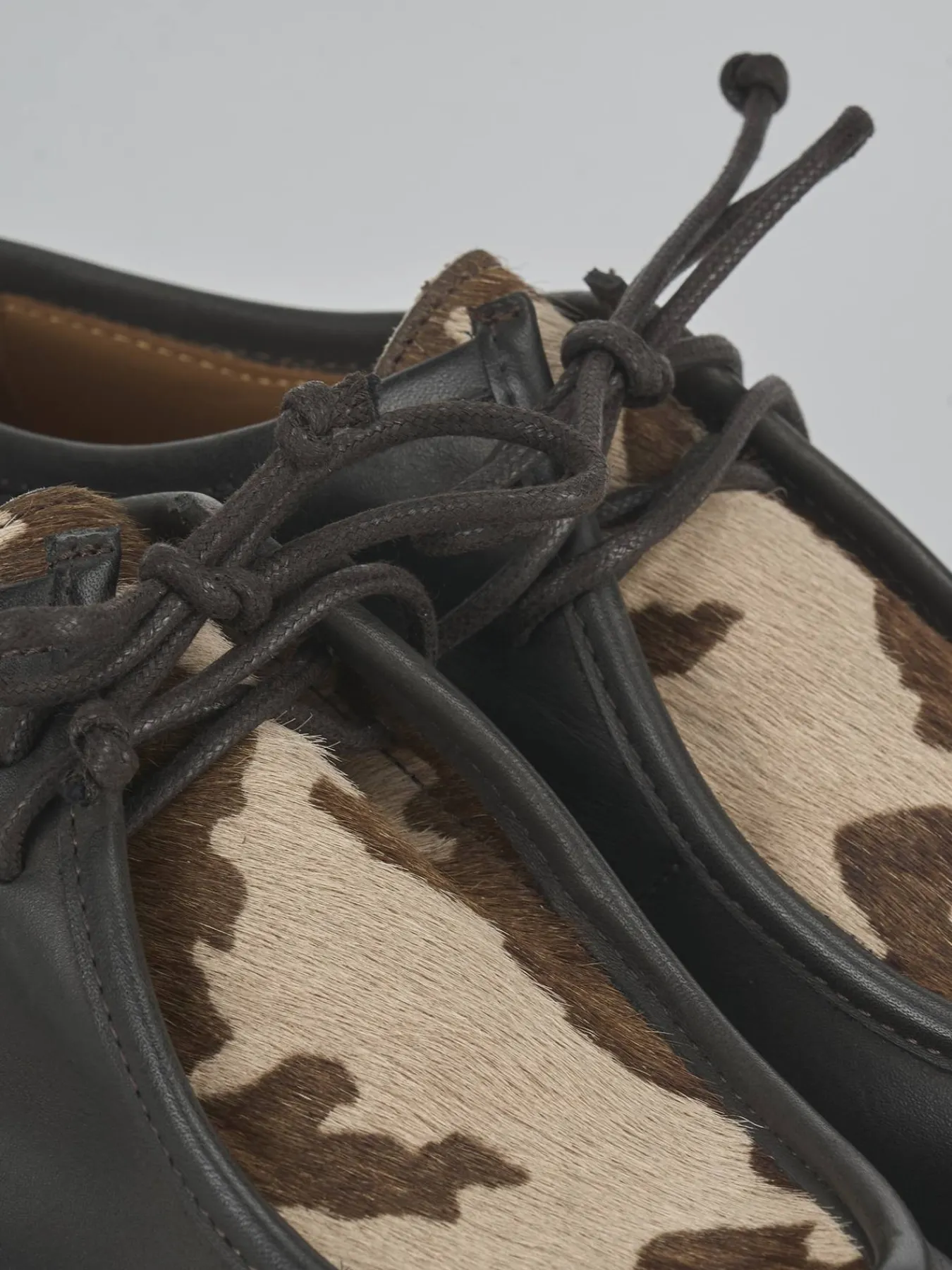 Gli inserti in pelle foderata in cavallino muccato aggiungono un tocco di originalità e divertimento ai tuoi look quotidiani.