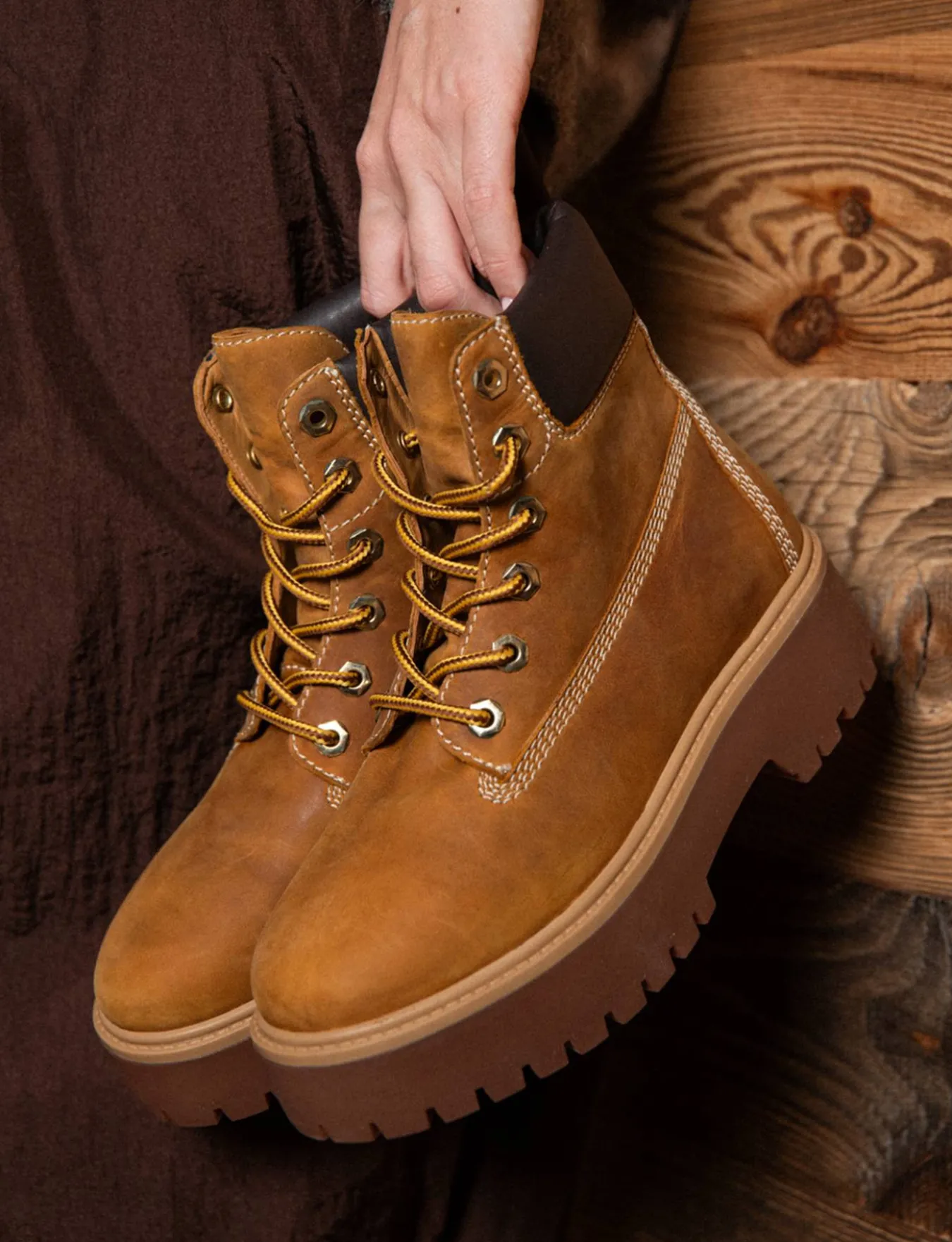 Le cuciture visibili aggiungono un dettaglio artigianale, mentre gli occhielli in metallo e il lace completano il design classico.