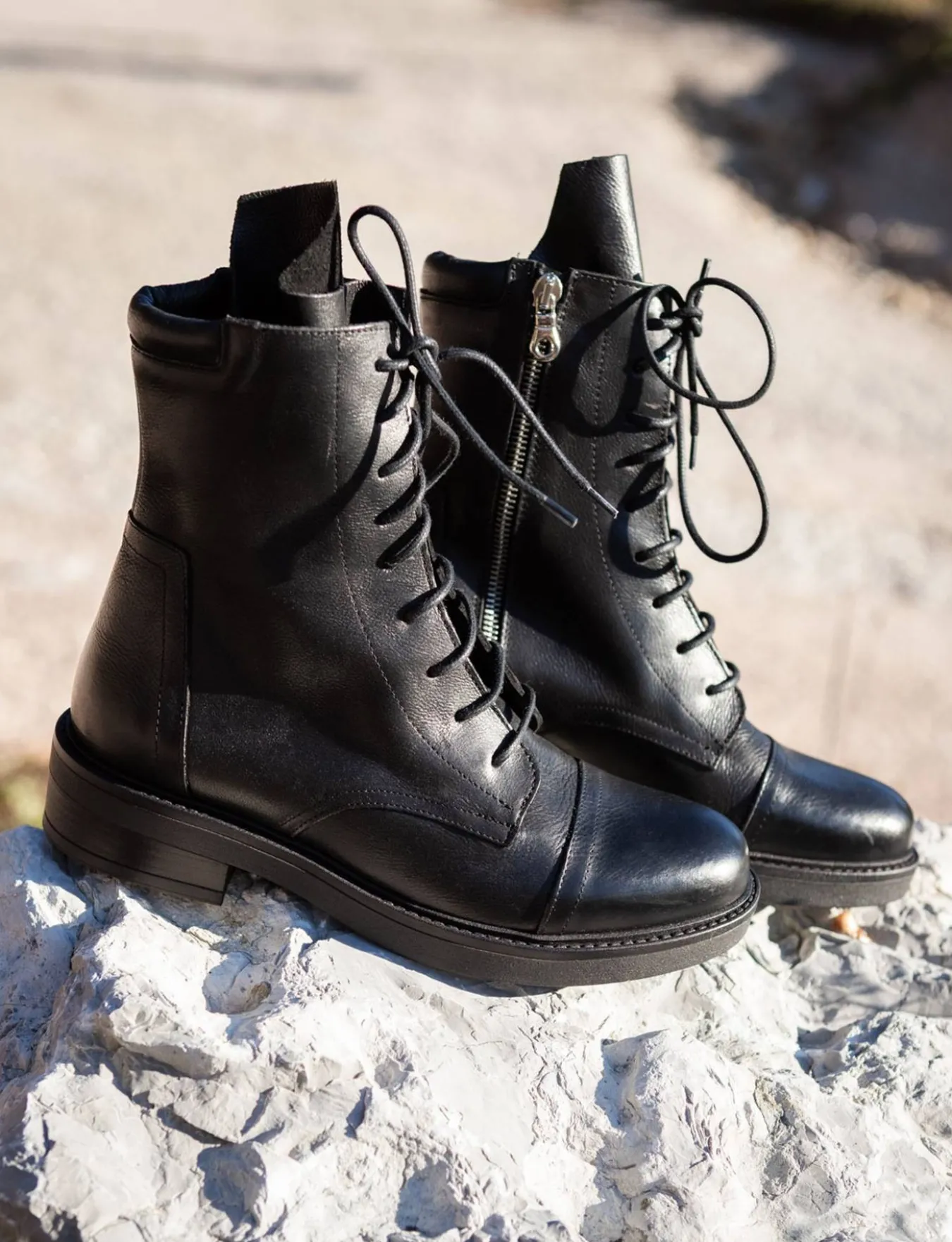 La comoda chiusura con cerniera laterale rende questi anfibi facili da indossare.