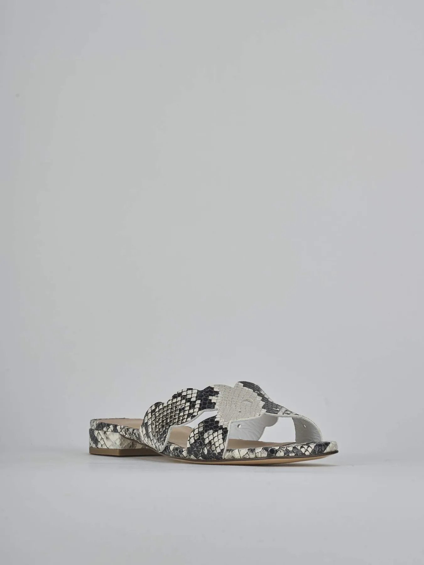 Realizzate in morbida nappa con una sofisticata stampa effetto pitonata multicolor, queste ciabatte sono un vero must-have per ogni guardaroba femminile.