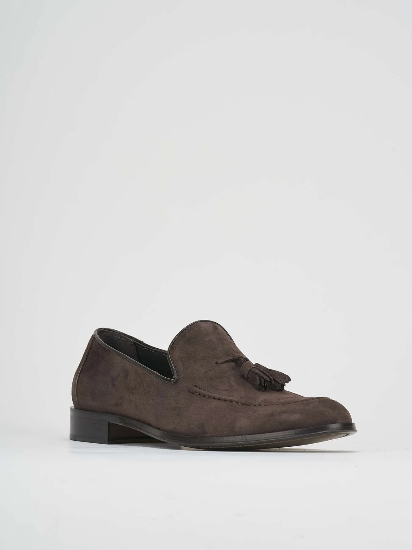 mocassino tacco 2 cm fondo in cuoio e soletto interno in vera pelle. Tomaia in morbidissimo camoscio con bellissima nappina sul collo del piede. Un classico oltre le stagioni.