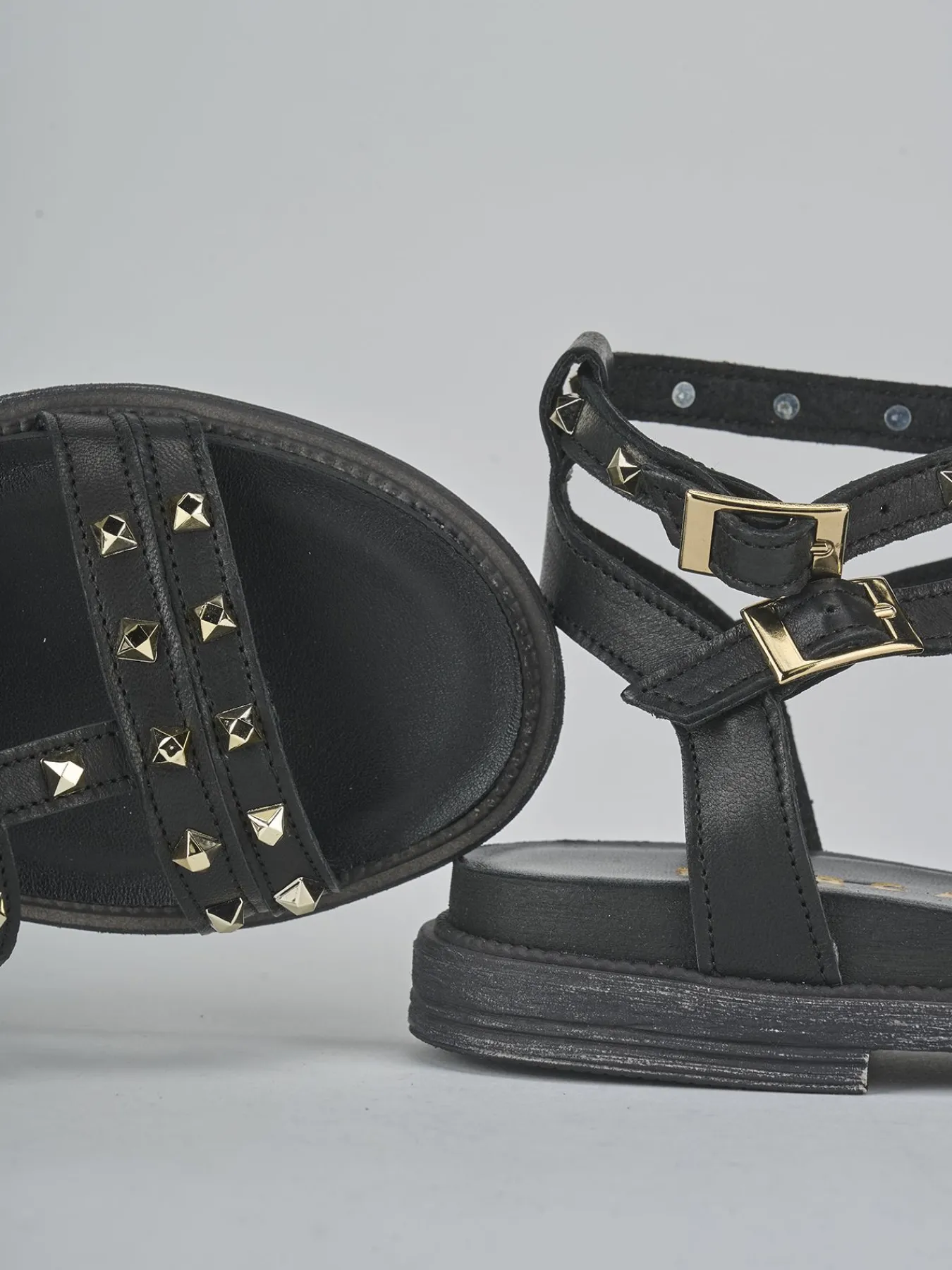 Sandalo tacco 2 cm fondo in leggerissima gomma e soletto interno in vera pelle. Tomaia in morbida pelle, punta affusolata, fasce, borchie e due cinturini con fibbia regolabile per un look perfetto per la tua estate. Soletto interno imbottito per una calzata supersoft.