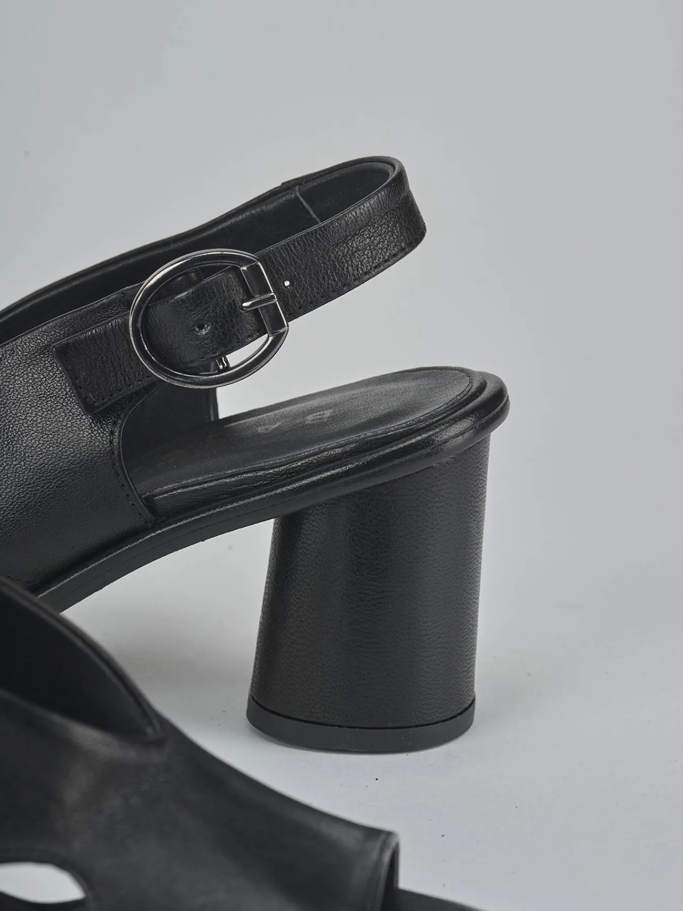 Sandalo tacco 6 cm fondo in cuoio e soletto interno in vera pelle. Tomaia in morbida pelle, punta tonda, cinturino con fibbia regolabile che avvolge bene il tallone e tacco a cono. Versatile sia con un vestito che con un paio di bermuda.