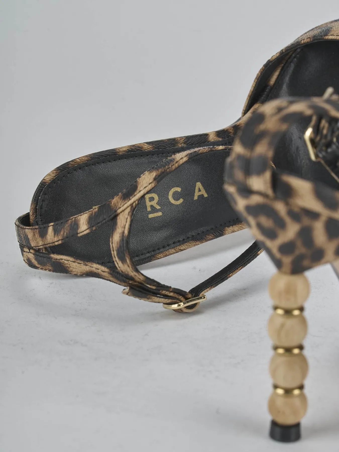 Sandalo tacco 8 cm fondo in leggera gomma e soletto interno in vera pelle. Tomaia in morbida pelle stampata leorpardo, punta sfilata, fascia con taglio geometrico, cinturino in caviglia con fibbia regolabile e tacco particolare con strass e perle. Per un look che ti farà notare.