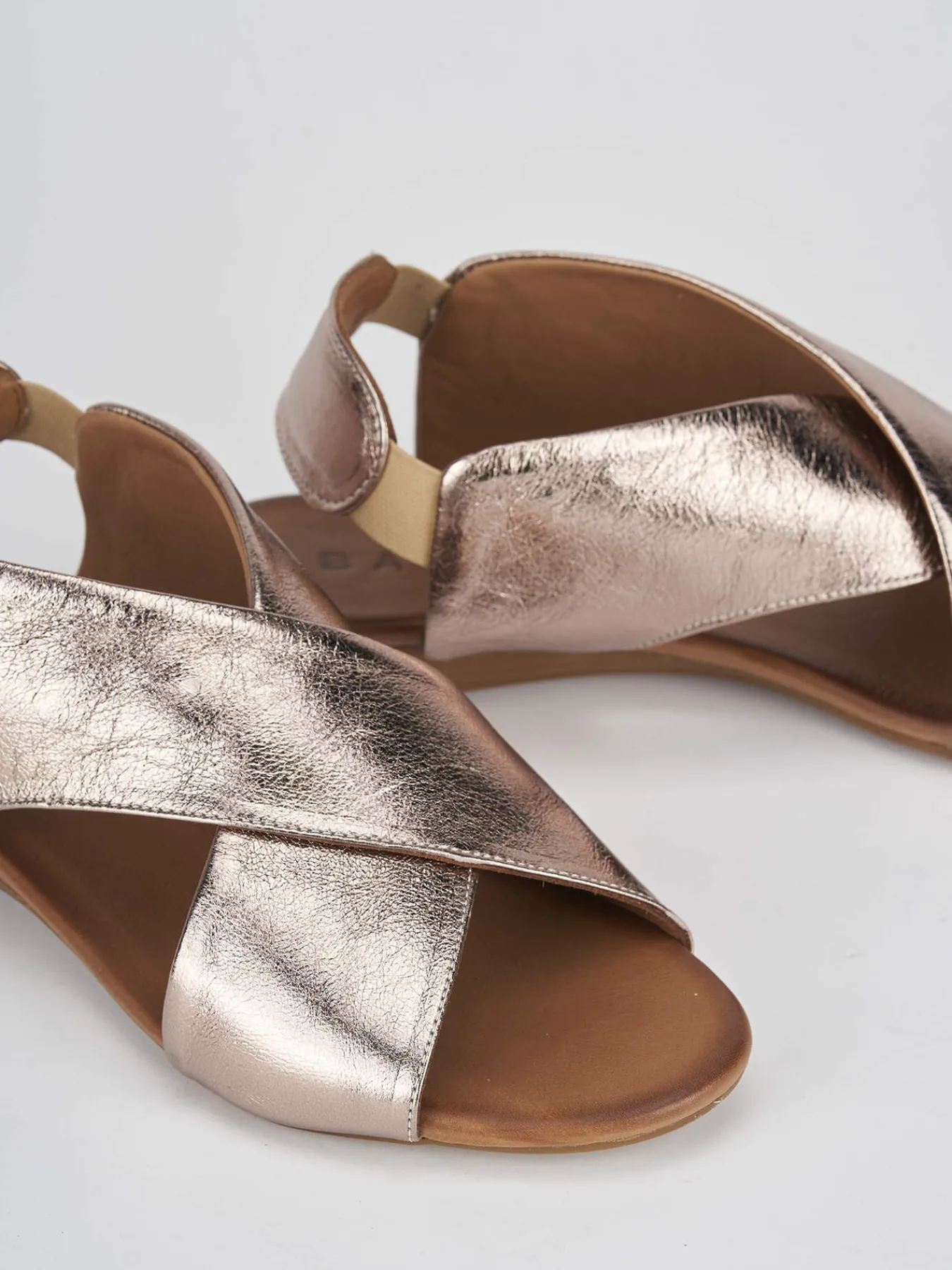 sandalo zeppa 3 cm fondo in leggerissima gomma e soletto interno in vera pelle. tomaia in morbida pelle, con fasce incrociate e comodissimo slingback elasticizzato per una calzata veloce.