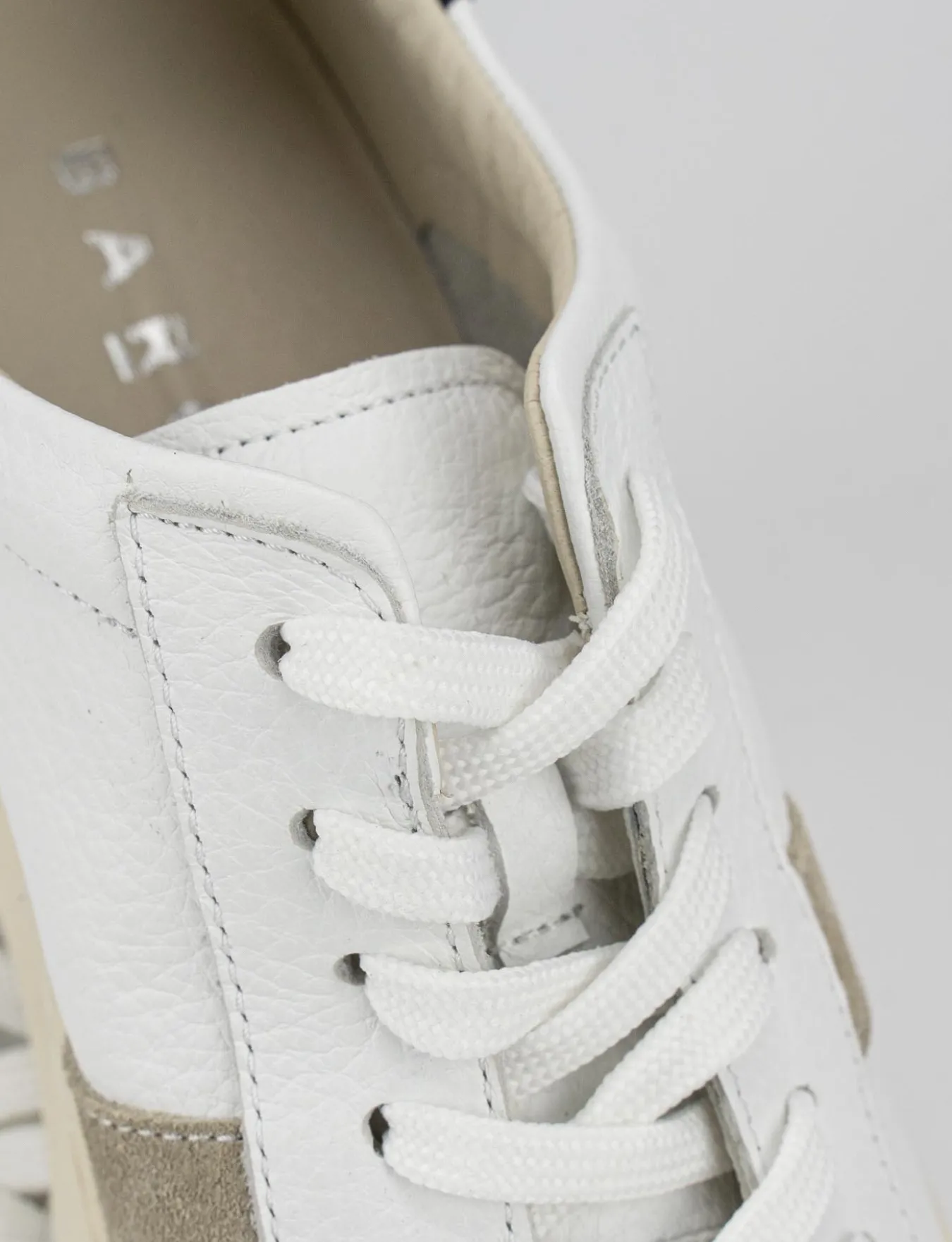 sneakers fondo gomma e soletto interno in vera pelle. tomaia in morbida pelle, lace, topponcino in contrasto e fascia laterale in camoscio. Perfetta con ogni tuo look.