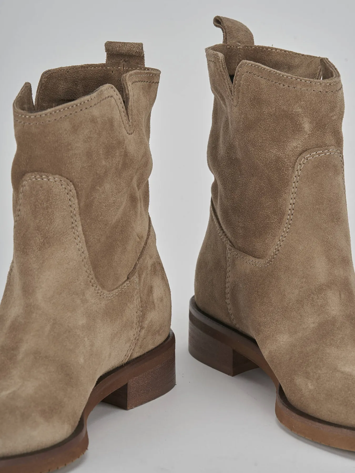 Stivaletto tacco 2 cm fondo in leggerissima gomma e soletto interno in vera pelle. Tomaia in morbida pelle scamosciata, punta affusolata, cuciture a vista, piccolo scollo a ‘V’ sui lati e tacco solido. Modello passepartout per eccellenza, pensato per le attività di ogni giorno.