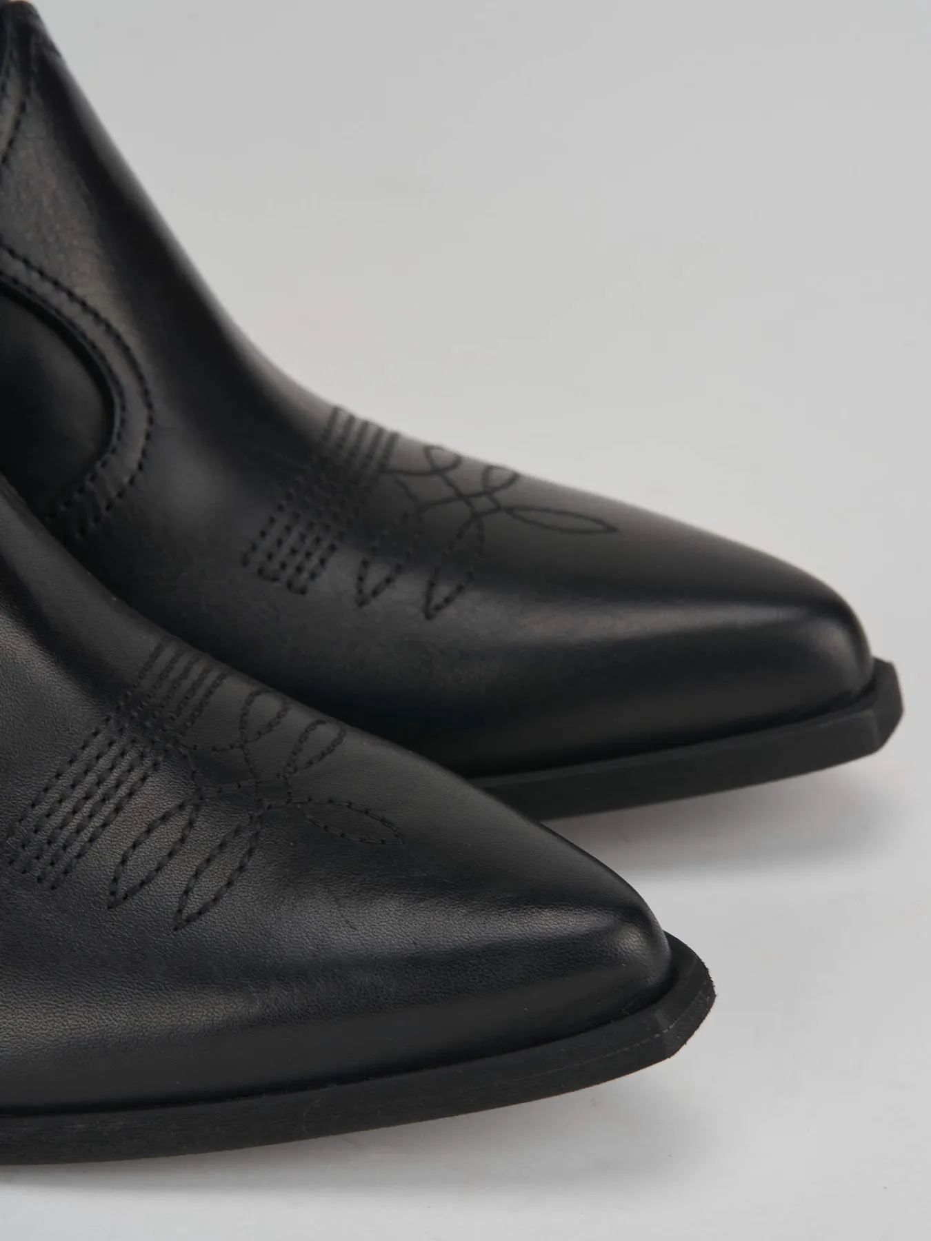 Stivaletto texano tacco 7cm fondo in leggera gomma e soletto interno in vera pelle. Tomaia in pelle con ricami in tinta. Ghette laterali e nuovo tacco per i tuoi tex look piu’ cool!