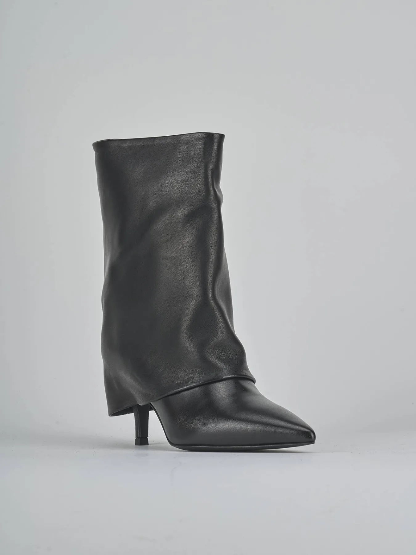 La tomaia in morbida pelle nappata avvolge il piede con un risvolto fino al tallone, mentre la punta sfilata dona un aspetto sofisticato.