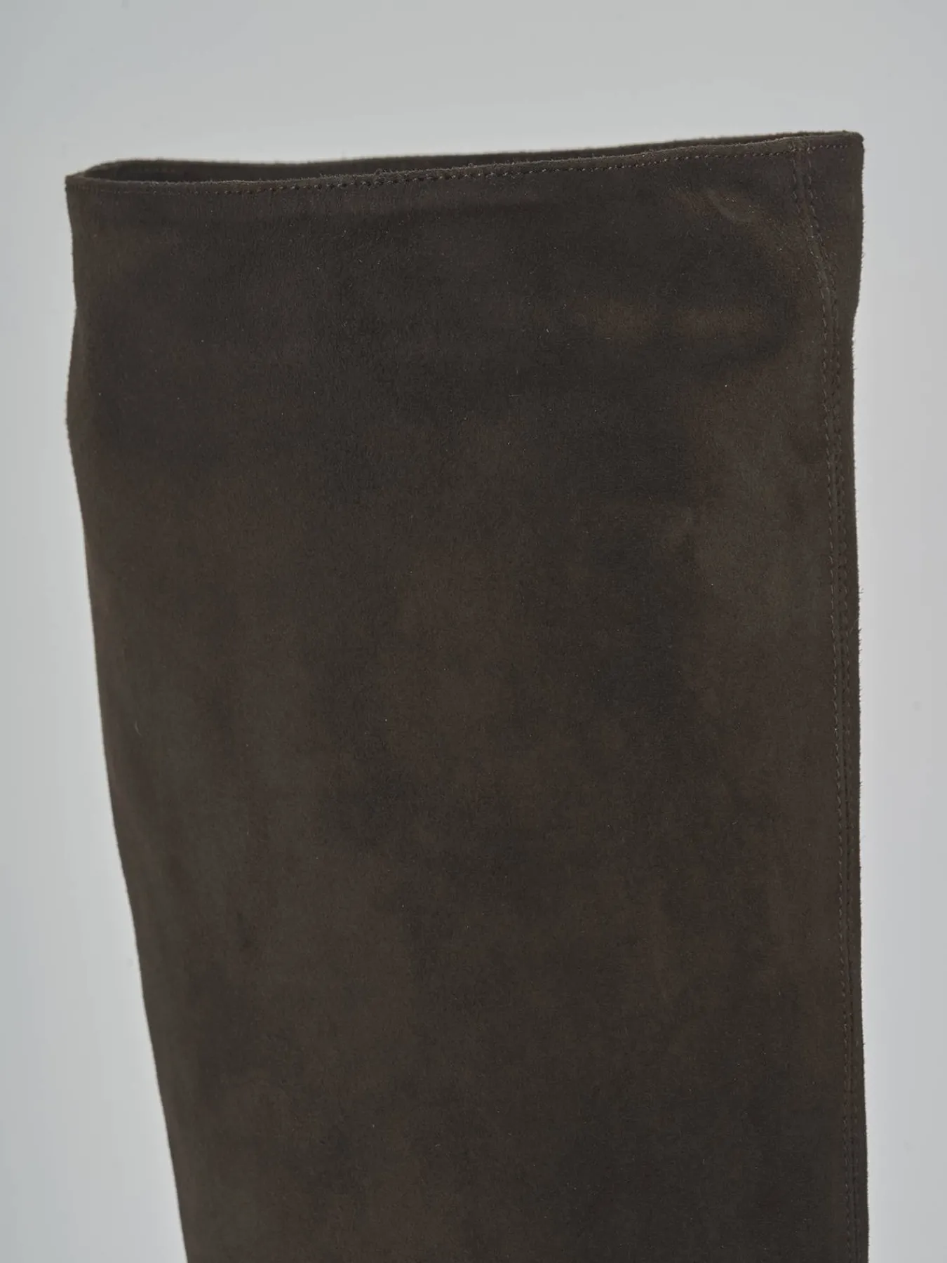 La punta sfilata e la cucitura a mano sul gambale, che si ferma appena sotto il ginocchio, aggiungono dettagli raffinati.