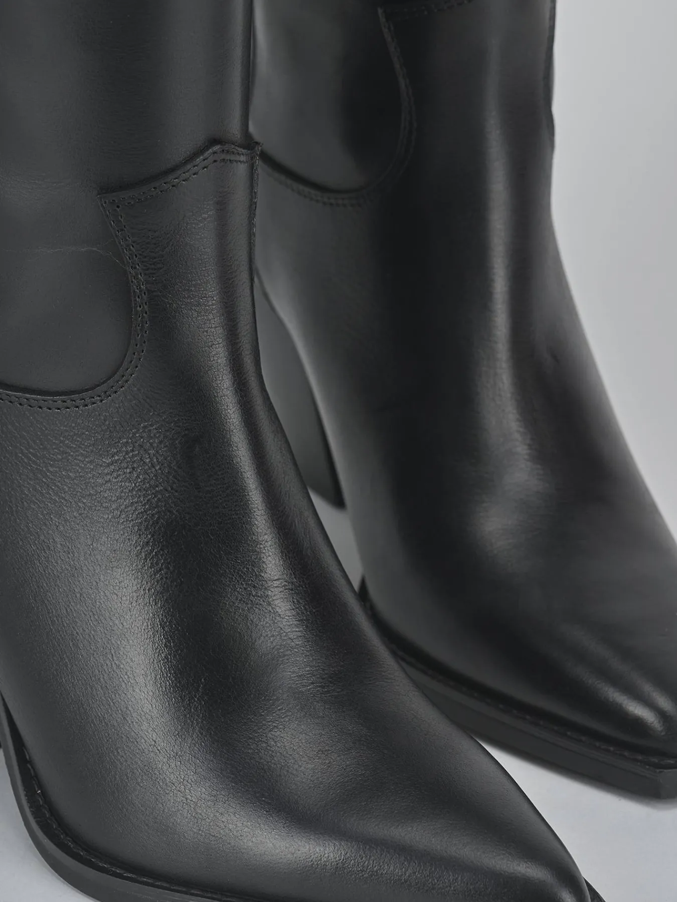 La tomaia in morbida pelle offre un comfort avvolgente, mentre la punta sfilata e le cuciture visibili sul gambale donano un look distintivo e raffinato.