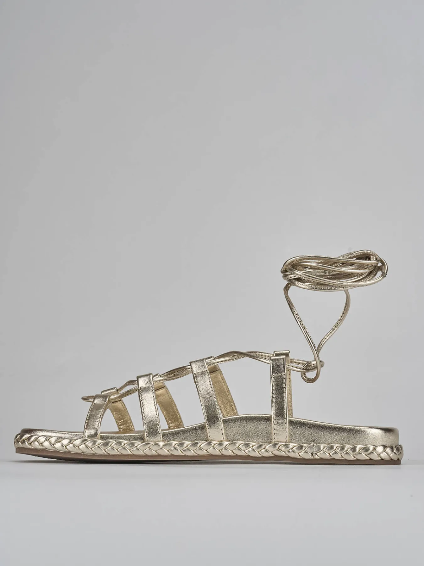 L’allacciatura alla schiava alla caviglia aggiunge un tocco di sofisticatezza, mentre la treccina decorativa lungo il bordo conferisce un tocco distintivo.