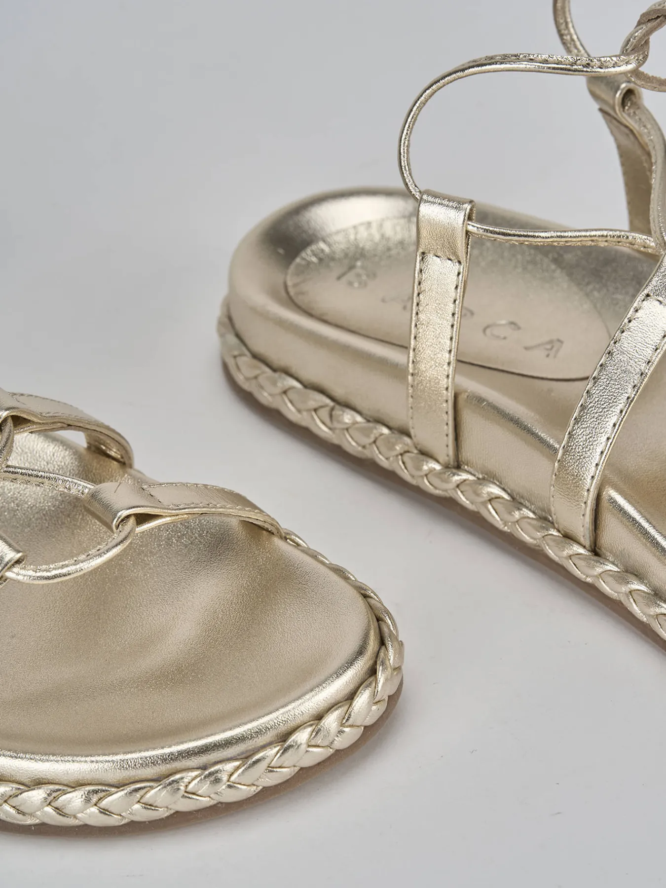 Con un design raffinato, la tomaia in morbida nappa presenta sottili cinturini intrecciati che avvolgono delicatamente il piede.