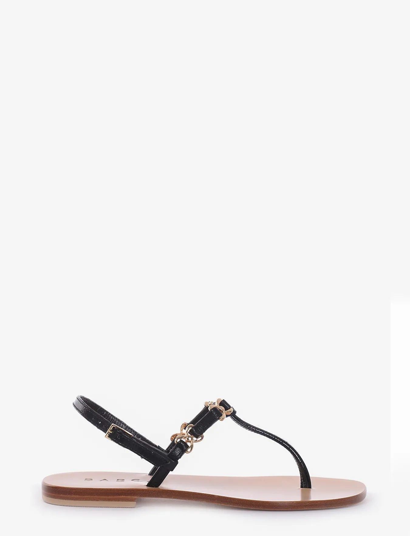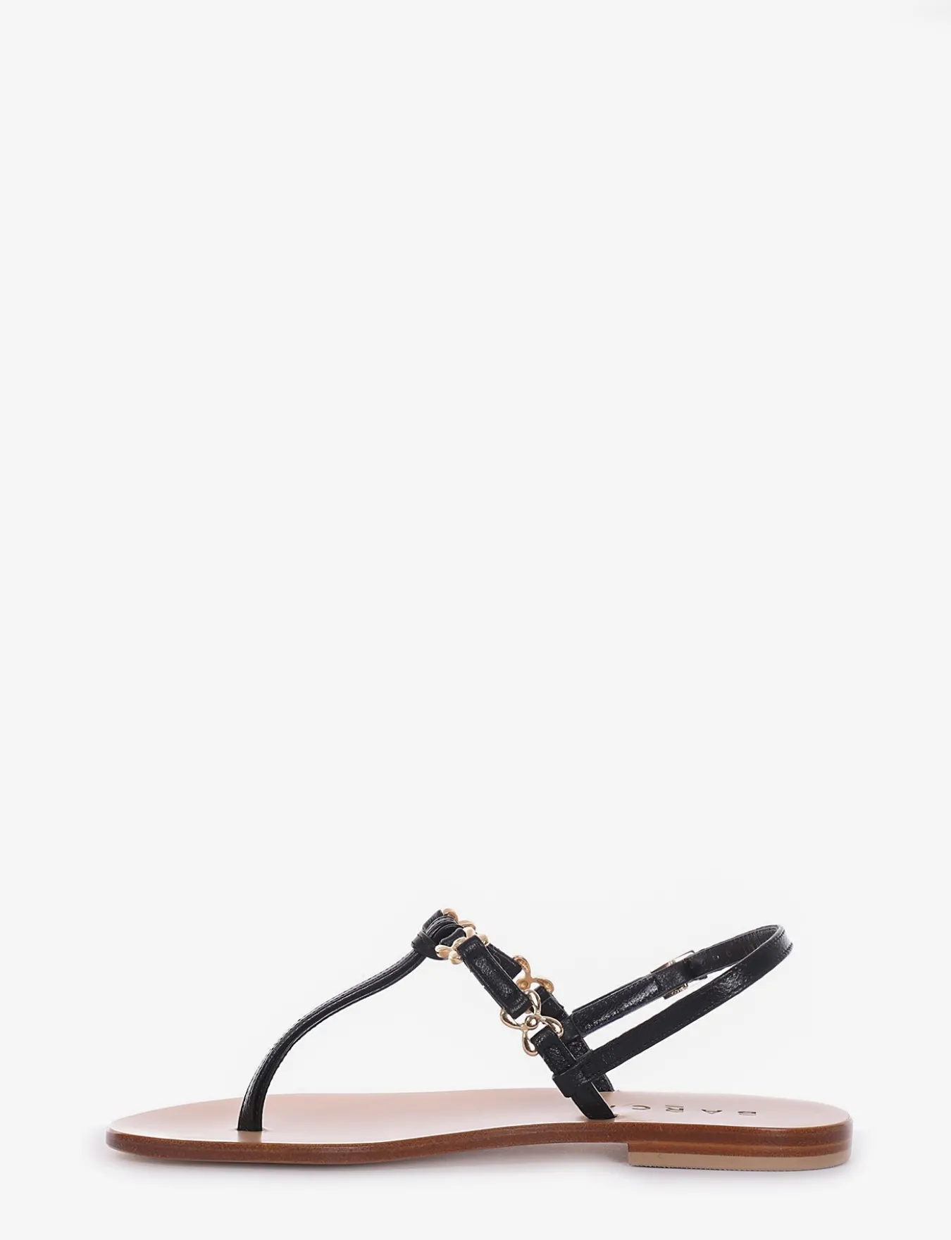 sandalo tacco 1 cm, fondo in cuoio e soletto interno in vera pelle. Tomaia in bellissima pelle nappata con accessori in acciaio color oro.