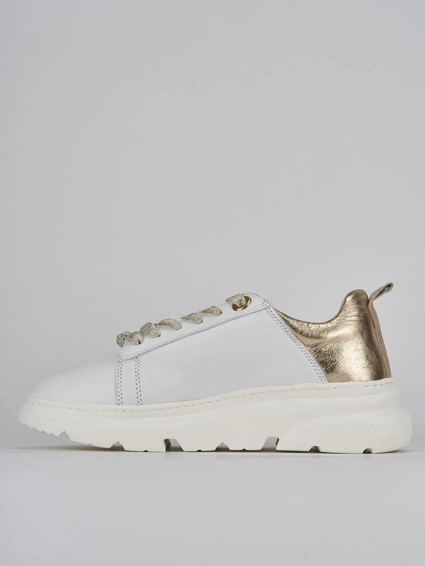 Il particolare tallone in pelle laminata a contrasto dona un tocco di originalità e modernità.