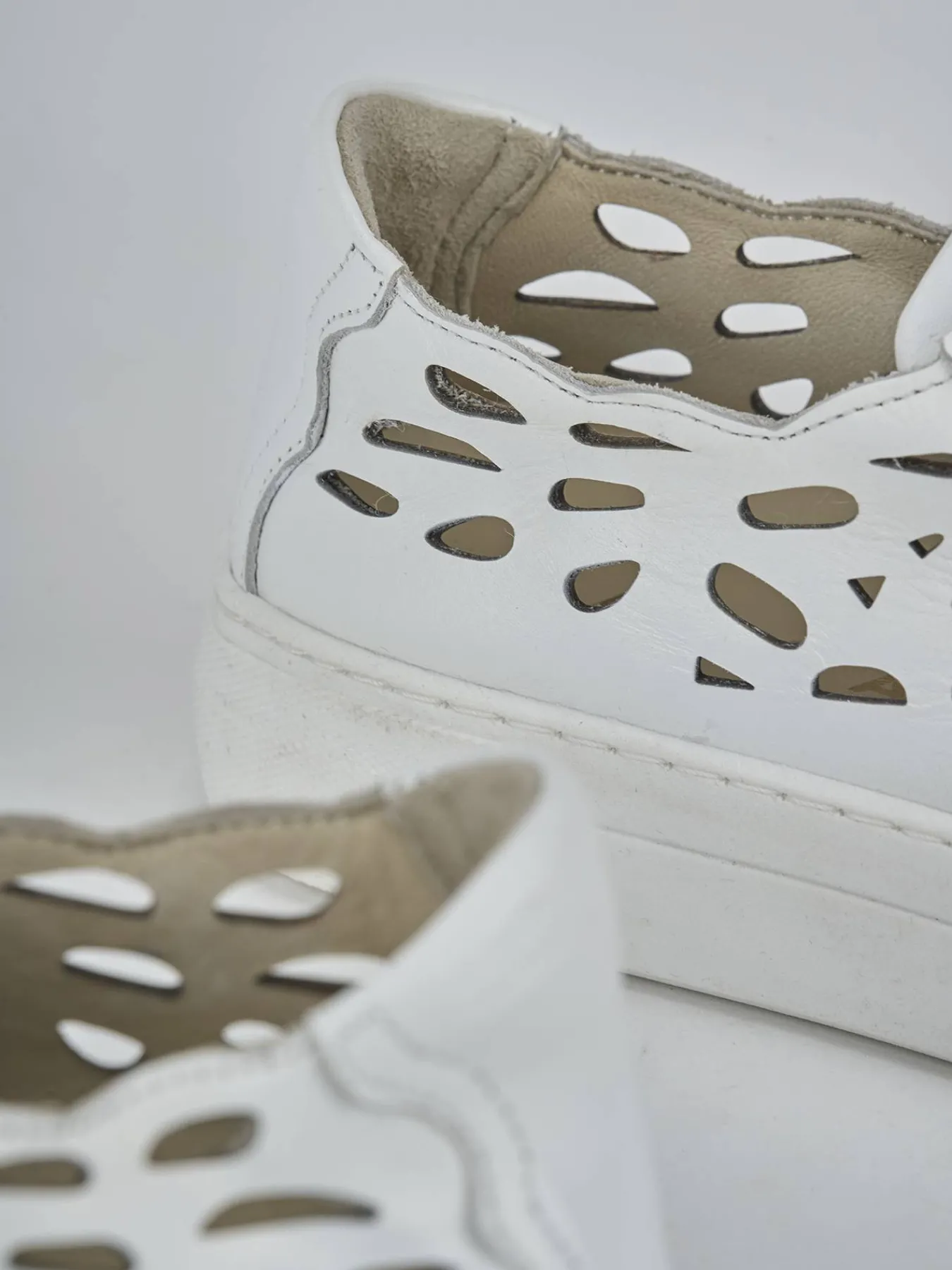 Realizzate in morbida pelle, presentano eleganti fori laserati ai lati, che donano un aspetto moderno e divertente.