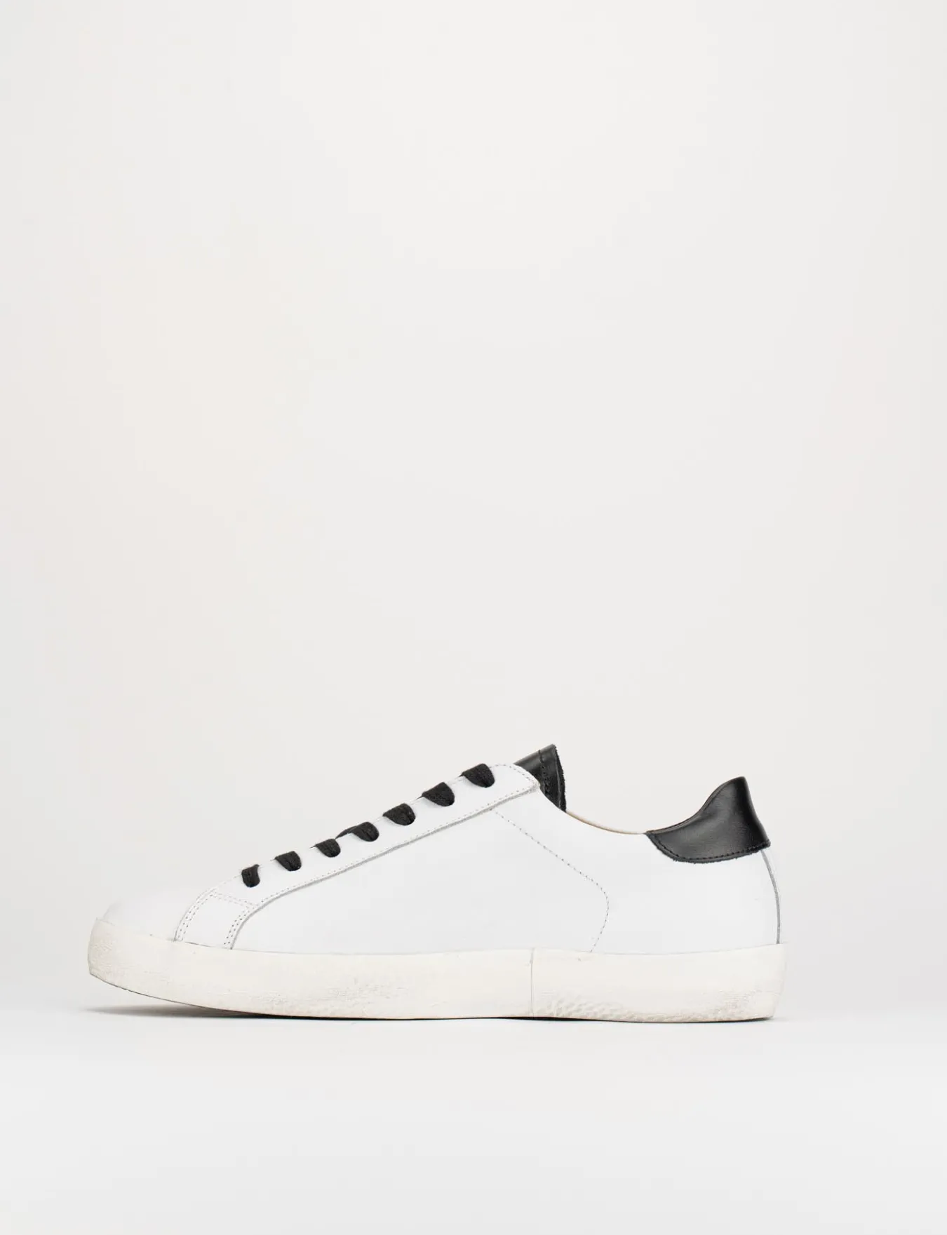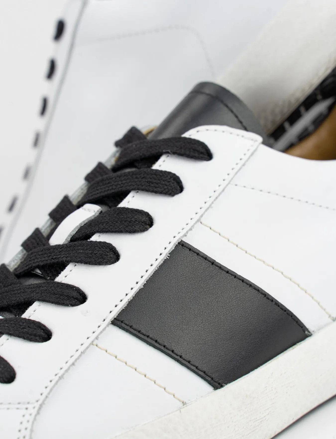 sneakers fondo gomma e soletto interno in vera pelle. Tomaia in morbida pelle con topponcino e fascia laterale in pelle a contrasto per un look cool.