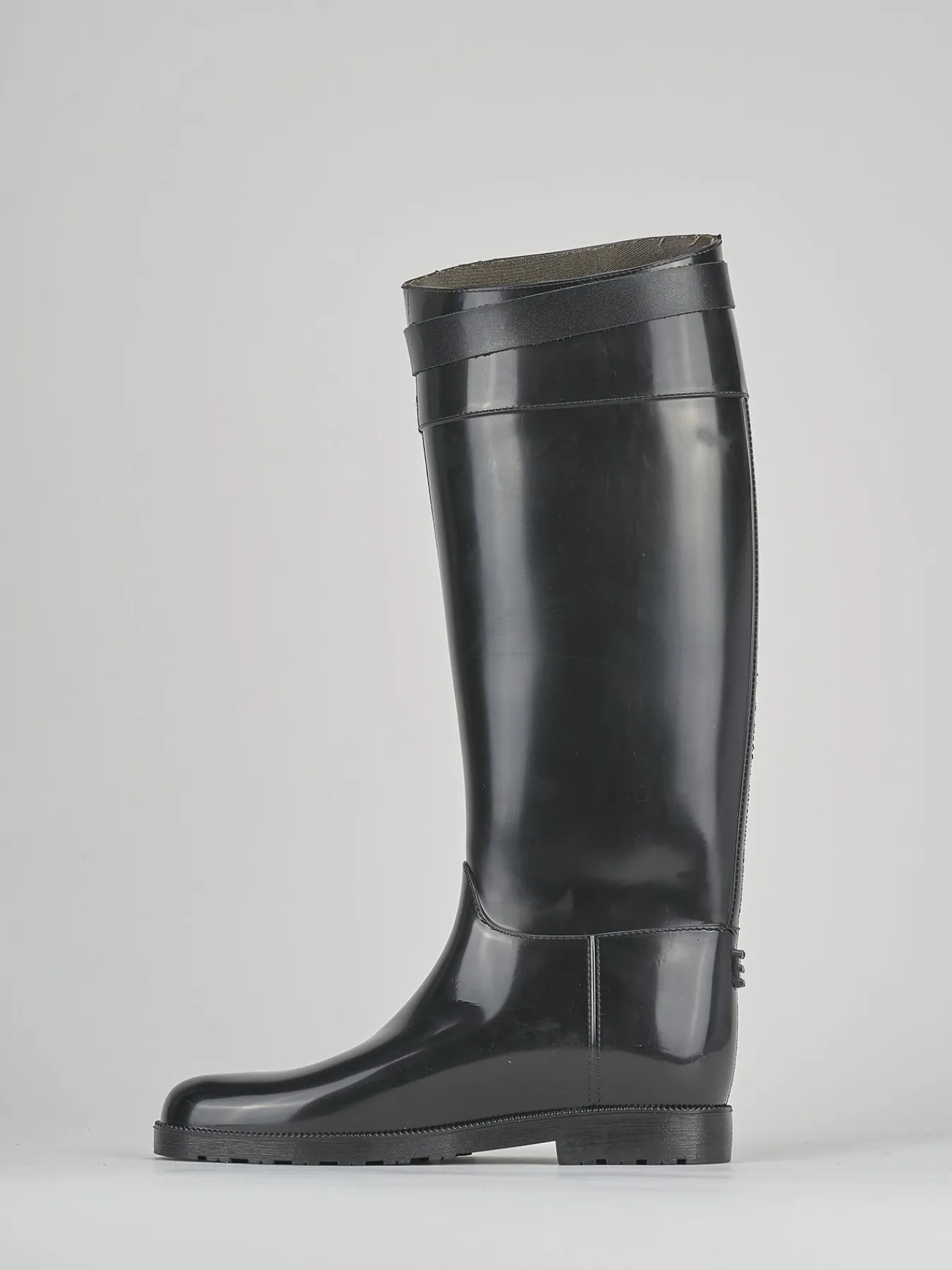 Realizzato in gomma nera, questo stivale da donna presenta un tacco basso di 2 cm, ideale per chi cerca comodità senza rinunciare all’eleganza.
