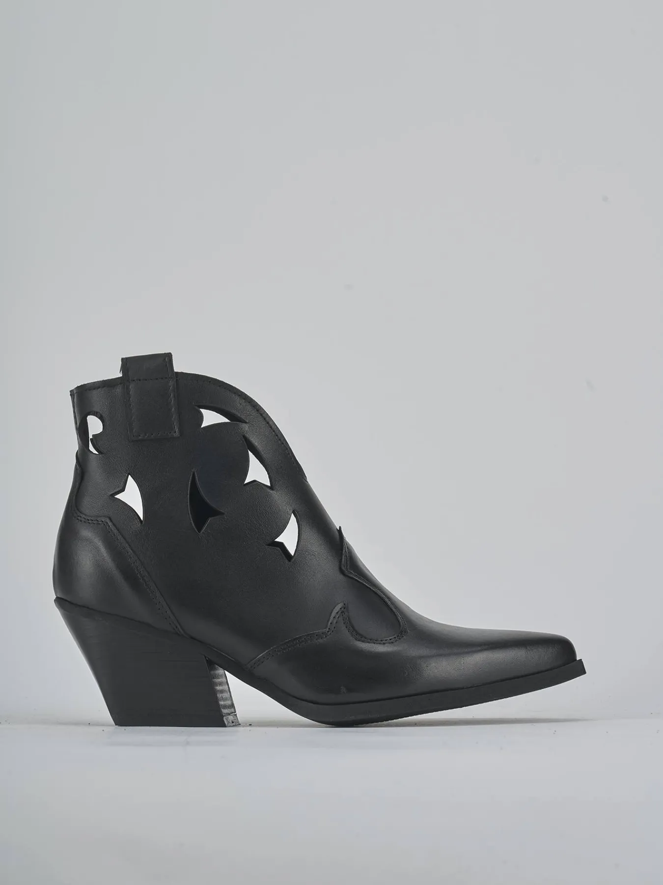 Stivaletto texano 5.5 cm fondo in gomma e soletto interno in vera pelle. Tomaia in morbida pelle, punta sfilata, ghette, cuciture in rilievo, laserato, rapida chiusura con cerniera laterale e tacco cubano. Dal design ricercato, versatile con ogni tuo look.