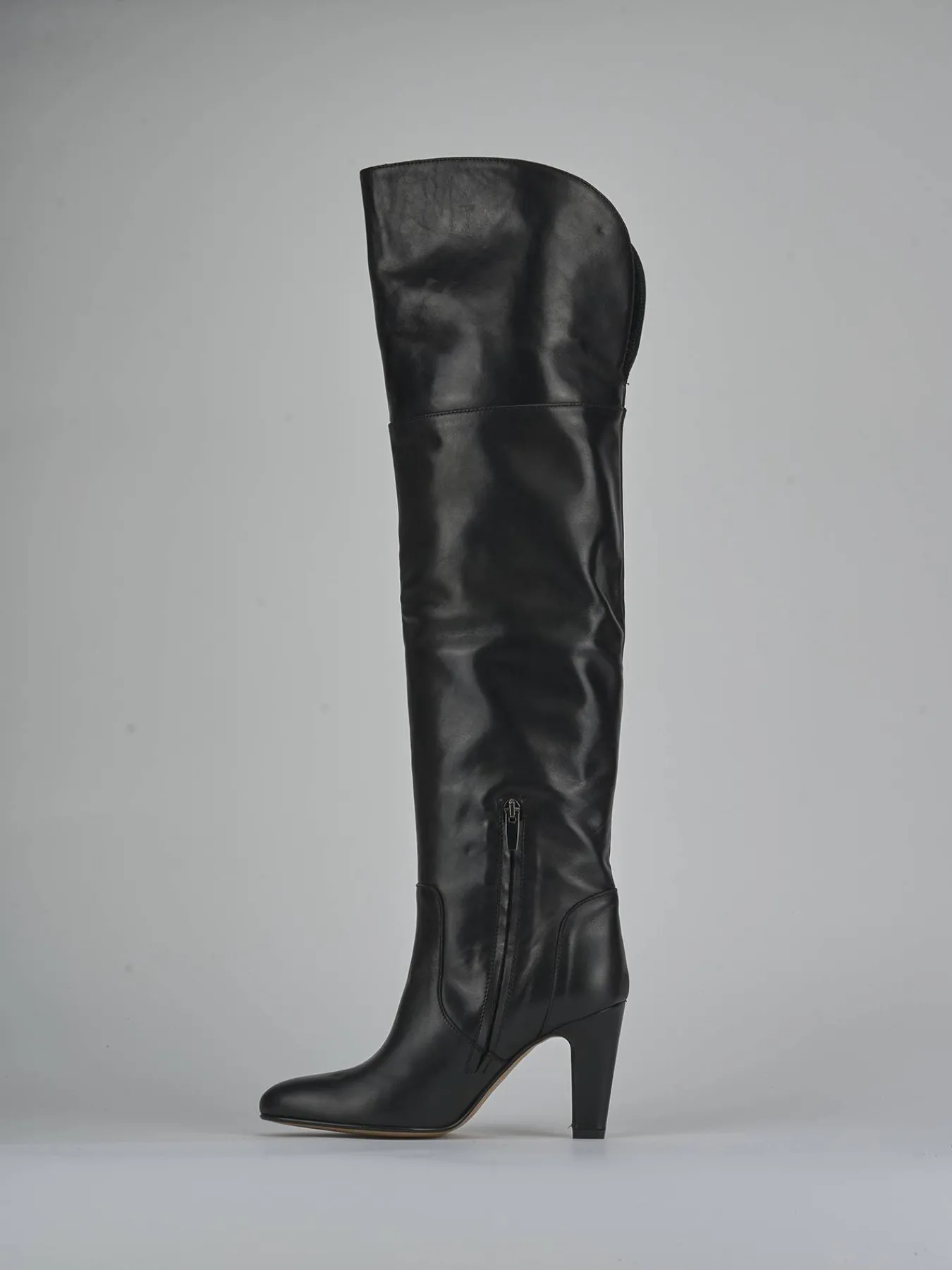 La pratica apertura a V posteriore e la comoda chiusura con cerniera laterale garantiscono una calzata perfetta.